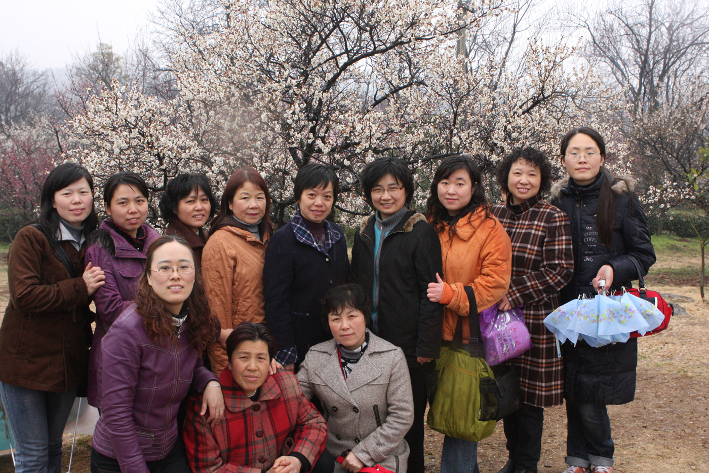 在春雨的滋潤下,梅花山上萬株梅花蓄勢待發(fā),含苞初綻;山頂?shù)牟糠置窐浜鸵恍┰缑芬呀?jīng)花開滿枝。女職工們在這歡樂的節(jié)日里,欣賞著梅花山春意盎然的景象,盡情地享受大自然的美好風(fēng)光,斜風(fēng)細(xì)雨絲毫沒能減少大家歡樂的情致。