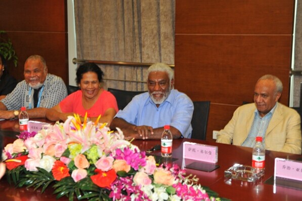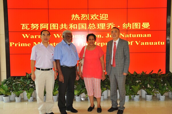 8月15日上午,正在中國南京出席第二屆青奧會開幕式的瓦努阿圖共和國總理喬·納圖曼在瓦外交部長薩托·基爾曼、瓦駐中國大使莫利薩夫婦和中國駐瓦大使謝波華夫婦等陪同下,率領(lǐng)政府代表團一行10余人來集團公司考察訪問。陳正華董事長熱情接待了代表團一行。